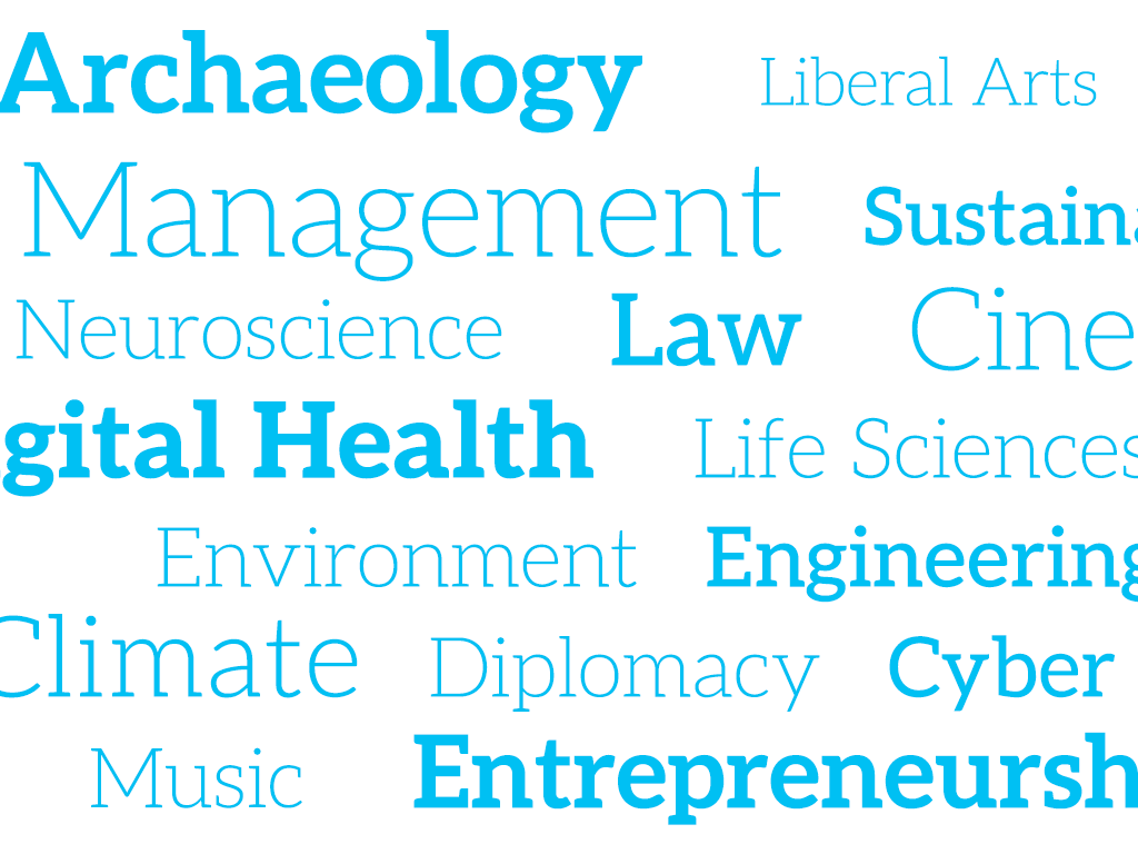 Archaeology • Liberal Arts • Management • Neuroscience • Law • Life Sciences • Cinema • Environment • Engineering • Digital Health • Climate • Cyber • Music • Entrepreneurship